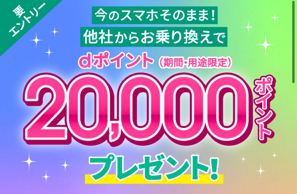 ahamoへMNPすると今なら20,000ポイントが貰えます